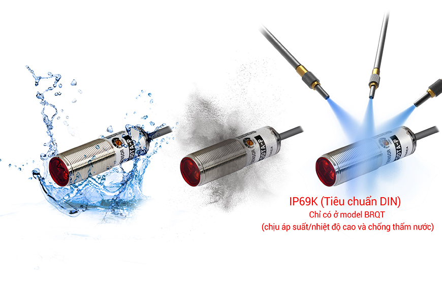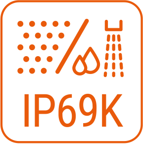 Cấu trúc bảo vệ IP67 cho phép thiết bị hoạt động ổn định ngay cả trong môi trường ẩm ướt hoặc bụi bẩn. Các model có cấu trúc bảo vệ IP67K có thể được ứng dụng trong môi trường nước và bụi với áp suất và nhiệt độ cao.